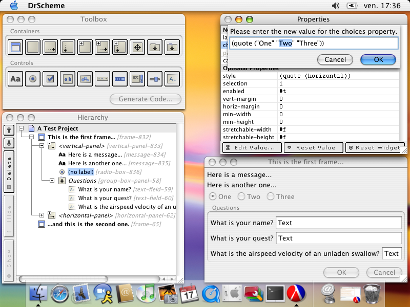 Welcome to mreddesigner.lozi.org! This website is the official web page of mreddesigner, a school project I worked on in 2004 when I was studying computer science at the University of Nice. MrEd Designer is a graphical interface designer for DrScheme inspired by the Qt Designer (a program which allows to easily develop GUIs using Qt or KDE classes). Here are a few screenshots :